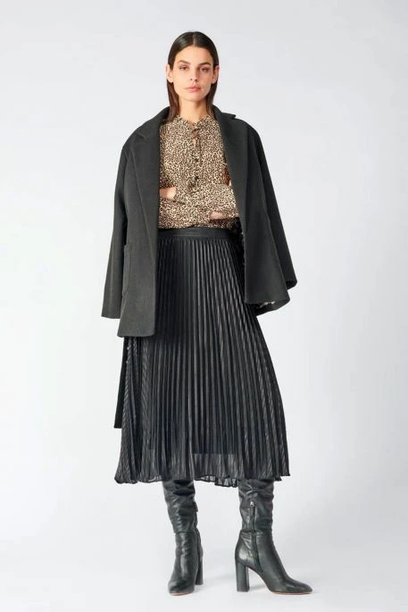 Blouse le Temps des Cerises, manches longues, motif léopard, fermeture boutons, deux poches poitrine + fermeture à boutons noirs-argentés et personnalisés LTC.