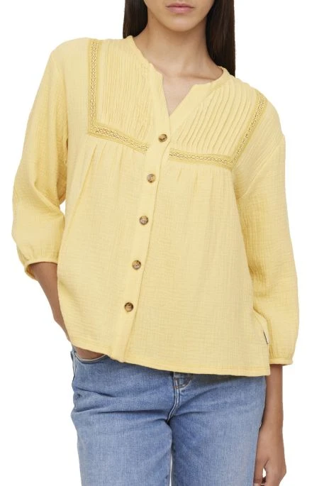 Blouse Lee Cooper Digny, blouse en gaze de coton manches 3/4, encolure en V avec un col tunisien.
