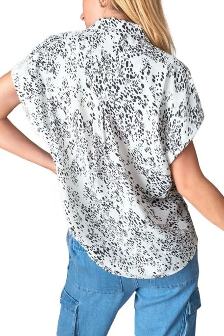 Chemise manches courtes pour femme. Chemise Le Temps des Cerises imprimé animalier, coupe classique, manches raglans, fermeture à bouton et deux poches à rabats sur la poitrine. Sa matière légère et fluide la rend très agréable à porter.