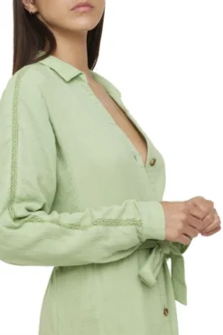 Chemise Lee Cooper Dhimmi pour femme. Chemise manches longues avec col bowling, boutonnée sur le devant et aux manches, coupe loose en coton et lin.