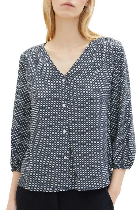 Chemise Tom Tailor pour femme, chemisier avec encolure en V, manches 3/4; motif géométrique,