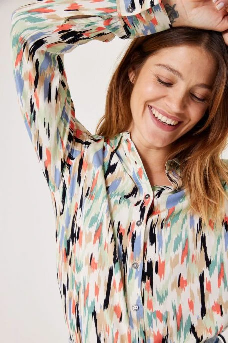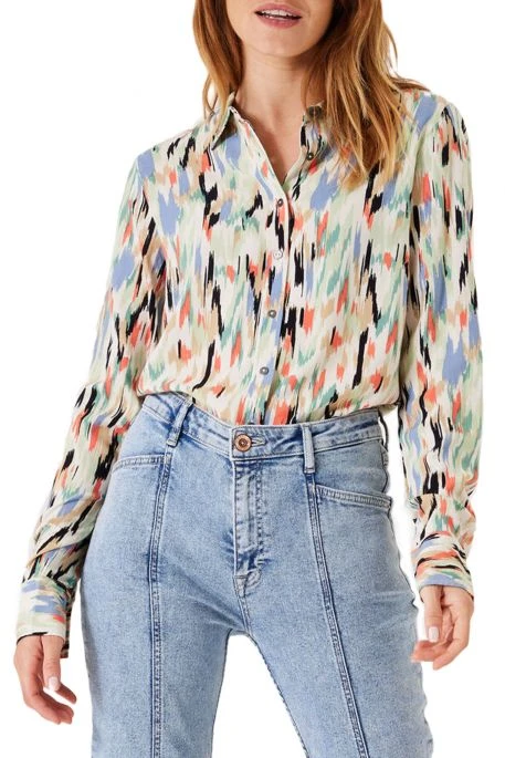Chemisier Garcia boutonné pour femme. Chemisier de coupe classique, manches longues avec poignets boutonnés, fermeture par patte de boutonnage. Tissu intégralement imprimé.