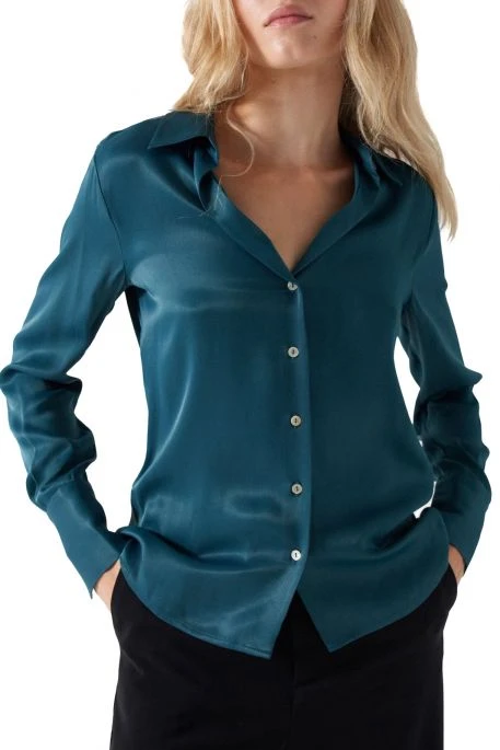 Chemisier Salsa pour femme, magnifique coloris et matière satinée, chemisier avec encolure en V et coupe ajustée très féminine,