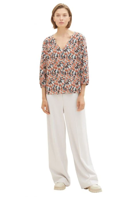 Chemisier Tom Tailor pour femme. Blouse en viscose col V, imrpimé floral multicolor. La chemise est manches 3/4 avec le bas des manches élastiquées.