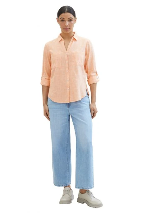 Chemisier Tom Tailor manches longues avec col, chemisier avec ouverture en V et patte de boutonnage, ce chemisier est confectionné avec du coton doux et durable, poches poitrine plaquées, fonction de revers pour attacher les manches.