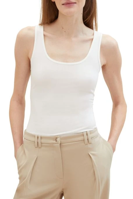 Débardeur pour femme Tom tailor. T-shirt sans manches col rond, coupe ajustée. 95% de coton.