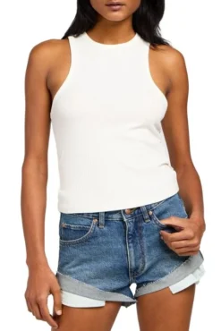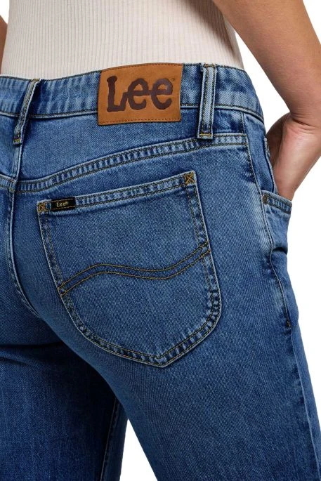 Jean Lee Marion Straight pour femme. Jean taille haute, coupe droite ajustée aux cuisses. Jean cinq poches, fermeture zippée.