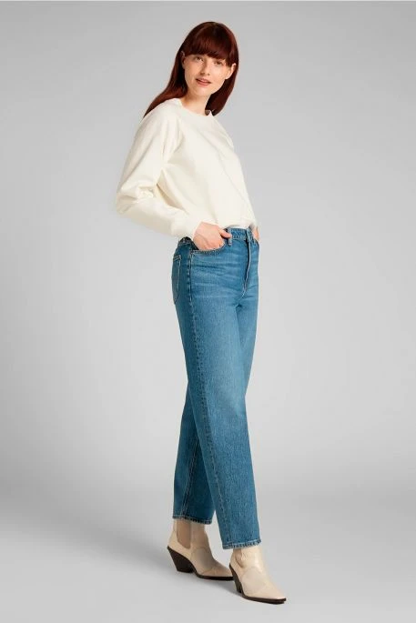 Jean Lee pour femme Wide, jean taille haute, coupe ample sur la jambe et le genou, jambe large, braguette zippée.