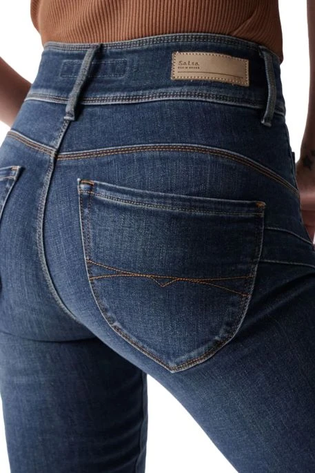 Jeans Salsa Secret slim pour femme. Jeans taille haute, slim fit, fermeture zippée, effet Push-In. Jeans 5 poches avec deux boutons