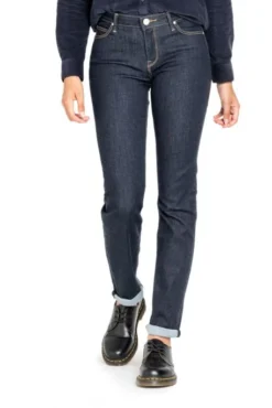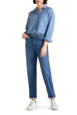 Jean Lee Marion Straight pour femme. Jean taille haute, coupe droite ajustée aux cuisses. Jean cinq poches, fermeture zippée.