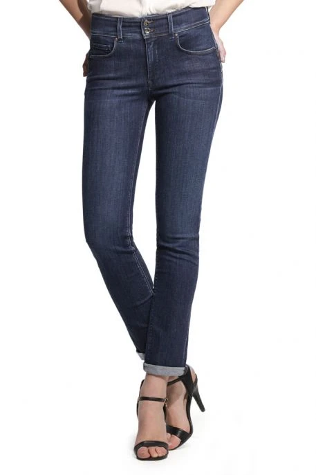Jean Salsa Secret Push In Slim pour femme. Jean de coupe slim du bassin jusqu’aux chevilles, taille haute. Effet push-in, gainant (ventre plat) et légèrement push-up à l’arrière. Fermeture par 2 boutons et braguette zippée