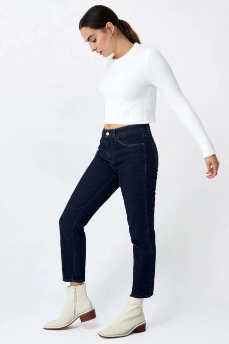 Jean Salsa True Cropped Slim pour femme. Jean de coupe courte et slim, taille haute ajustée au niveau du bassin, fermeture par bouton et braguette zippée.