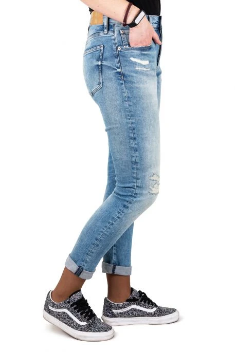 Jeans Teddy Smith pour femme, coupe slim, taille haute, Ă porter avec des revers si vous le souhaitez, usure sur le devant du jean