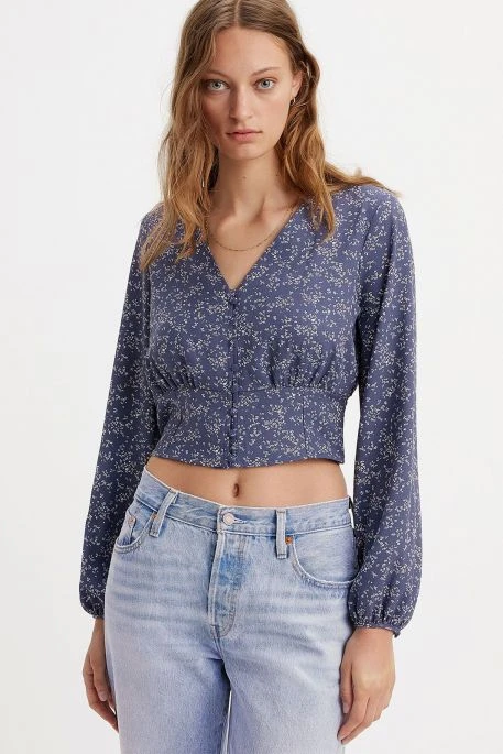 Chemise Levi’s® pour femme, chemise avec encolure en V, manches longues bouffantes, patte de bouttonage, coupe courte, imprimé floral,