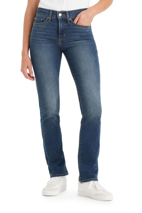 Jean Levi’s® 314™ pour femme. Jean taille montante, bassin emboîtant, ajusté aux hanches, coupe droite. Jean cinq poches avec fermeture zippée, empiècement ventre plat innovant.
