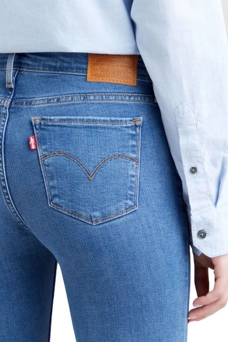 Jean Levi’s® 711™ pour femme. Jean de taille mi-haute, coupe très ajustée au niveau des hanches et des cuisses. Jambes skinny. Fermeture zippée. Denim brut à cinq poches. longueur raccourcie
