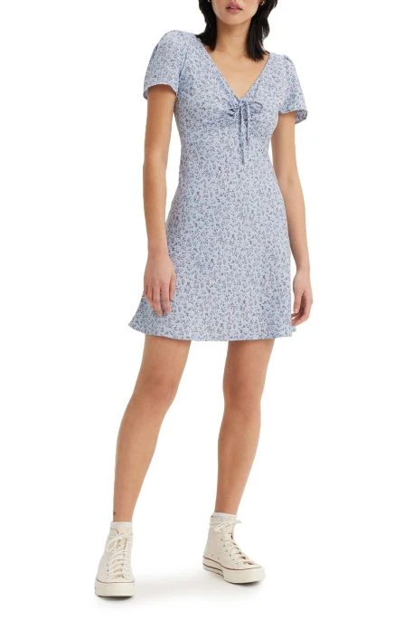 Robe pour femme Levi’s®. Robe courte, manches courtes, col V avec lien, imprimé floral.