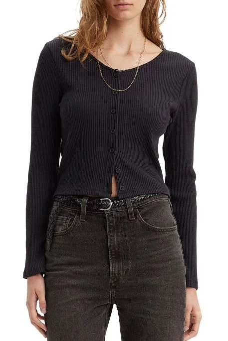 Tee-shirt Levi’sÂź Monica pour femme. T-shirt Ă manches longues, coupe slim, col en V. ModĂšle boutonnĂ© de haut en bas, tissu cĂŽtelĂ©.