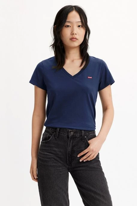 Tee-shirt Levi’s® Perfect pour femme. T-shirt de coupe droite, manches courtes, col en V. Jersey non extensible. Logo de la marque sur la poitrine gauche.