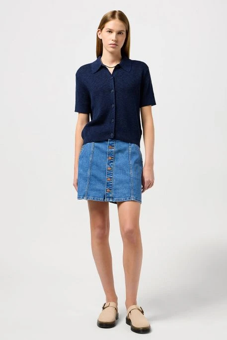 Polo Wrangler bleu marine pour femme, polo en maille avec fermeture boutonnée, manches courtes, coupe regular fit,