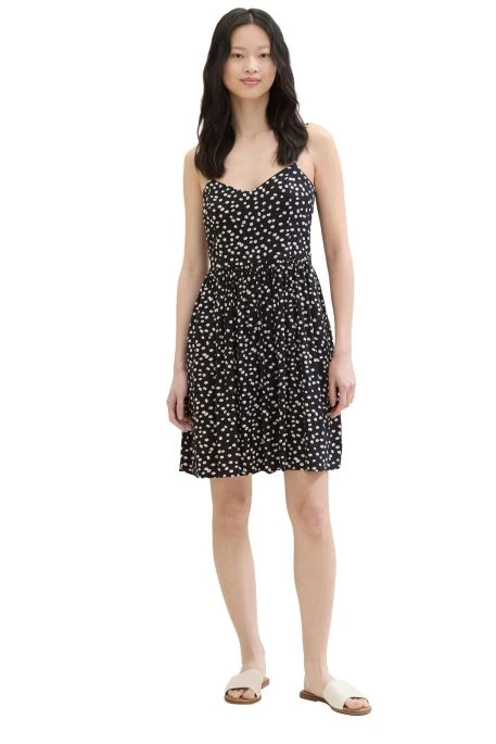 Robe courte Tom Tailor. Robe à fines bretelles réglables, col V, élastiquée au tour de taille.