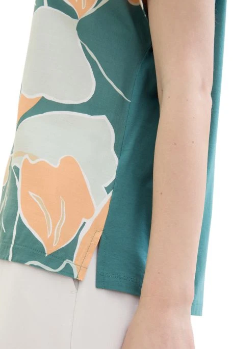 Haut Tom Tailor pour femme. T-shirt manches courtes manches raglan. Imprimé floral abstrait. Coupe légèrement ample.