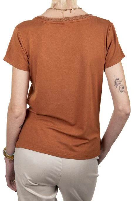 T-shirt Teddy Smith pour femme. Tee shirt manches courtes avec col V fantaisie, coupe standard. Ce vêtement possède le label OEKO-TEX qui garantit un processus de fabrication certifié et contrôlé, respectueux de votre peau.