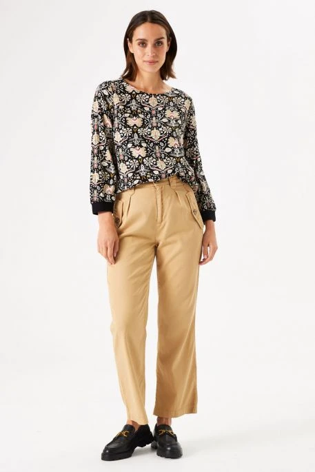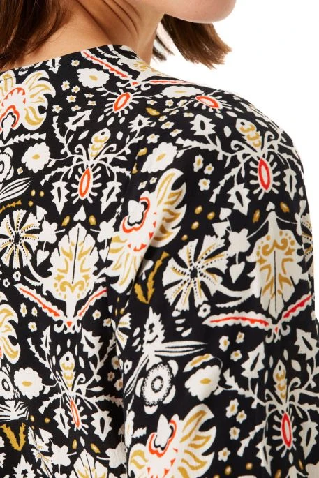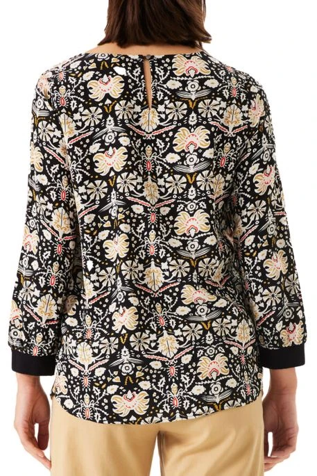 Tee Shirt Garcia pour femme, tee shirt manches longues avec encolure ronde, tee shirt à imprimé ethnique, les poignets ont une bordure noire qui met en relief ce bel imprimé !