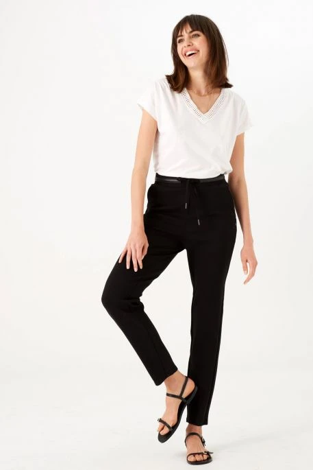 Tee-shirt Garcia Crocheté pour femme. T-shirt à manches courtes, coupe droite, col en V. Bord dur col avec détail crocheté.