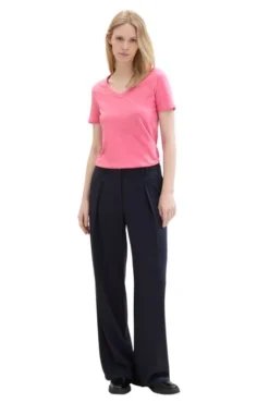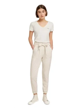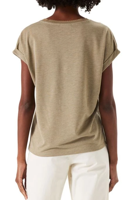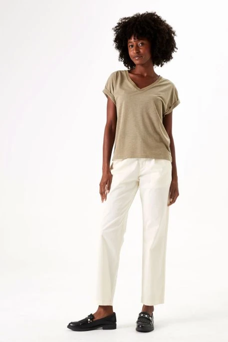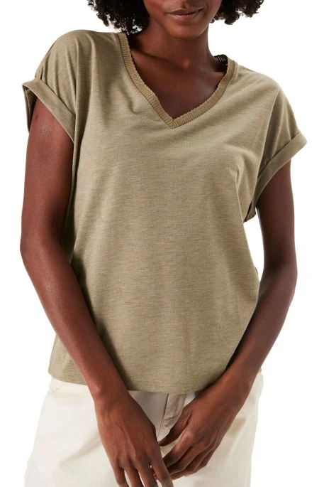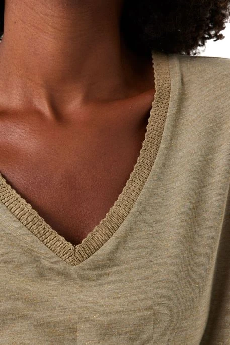 T-shirt manches courtes Garcia pour femme. T-shirt uni avec col V détails de lurex au col. Coupe classique. Manches avec un revers cousu.