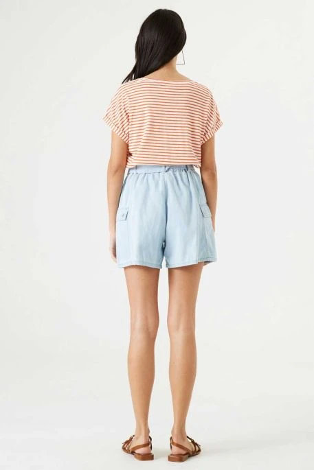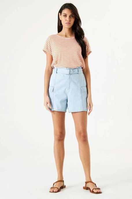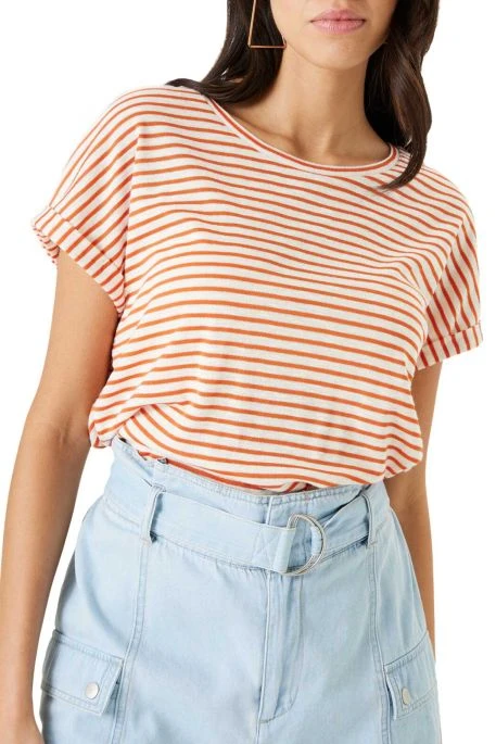 Tee Shirt Garcia rayé pour femme, tee shirt manches courtes avec encolure ronde, coupe confortable non ajustée.