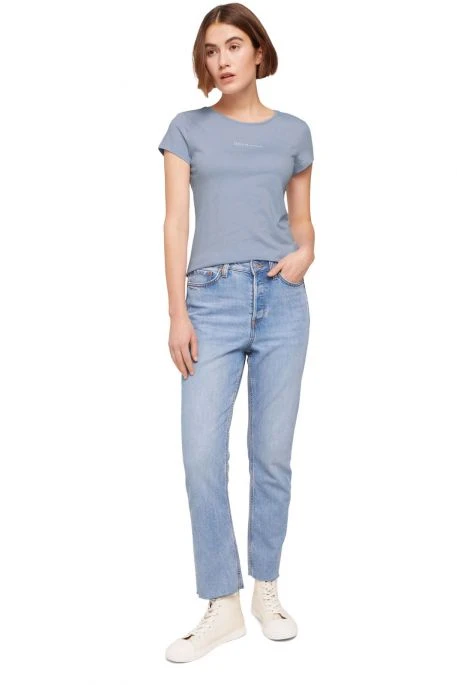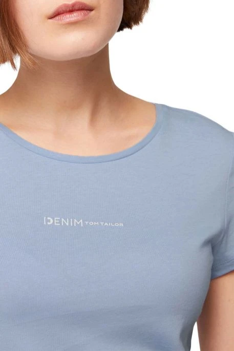 Tee-shirt Tom Tailor pour femme. Tee-shirt à manches courtes avec une encolure ronde. Logo discret Tom Tailor sur le devant. Coupe slim.