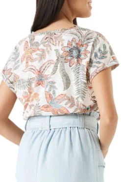 Tee Shirt Tom Tailor pour femme, manches courtes, avec coupe ample, avec un logo sur le côté de l’ourlet, inscription Tom Tailor Denim sur le devant