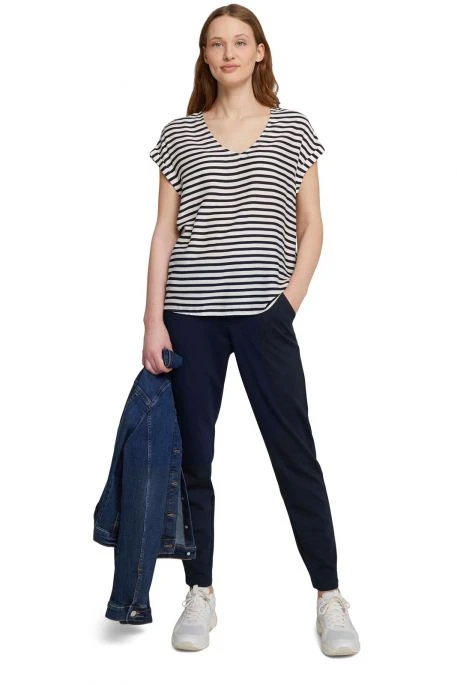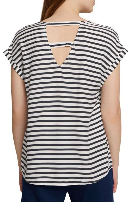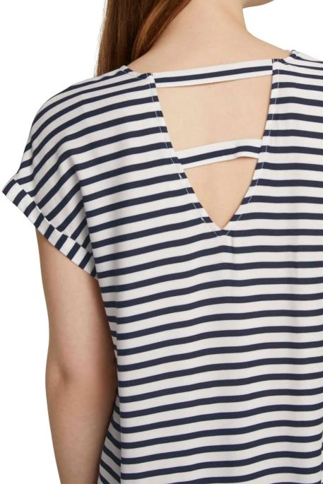 Tee Shirt TOM TAILOR femme, Tee shirt marinière bleu, tee shirt manches courtes, encolure en V, coupe classique, ouvert dans le dos.