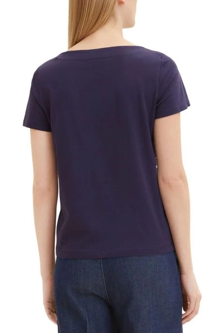 Tee Shirt Tom Tailor rayé avec imprimé sur la poitrine, tee shirt manches courtes avec encolure sous-marine, coupe classique , ce tee shirt est confectionné en coton doux et plus durable