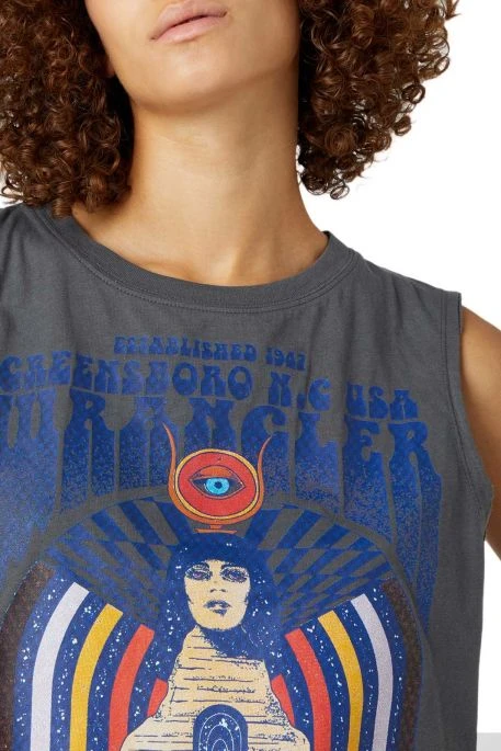 Tee Shirt Wrangler pour femme, tee shirt de coupe courten sans manches, coupe regular, encolure ronde,